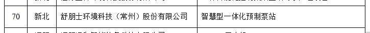 2019年11月22日至2019年11月28日,市工信局组织开展的2019年度常州制造创新产品评选结果进行了公示,舒朋士智慧型一体化预制泵站成功入选,纳入《常州市制造创新产品首购和推广应用推荐目录》。