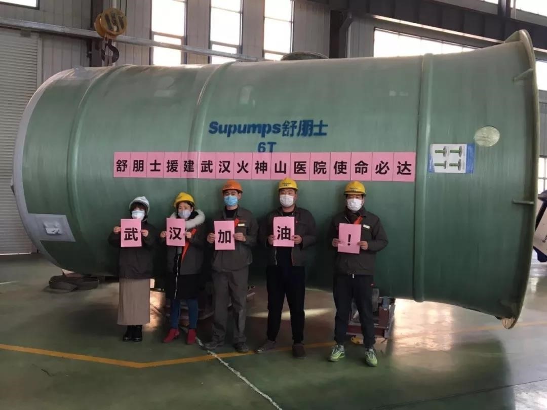这套一体化预制泵站是广西柳城县两家单位预订的,货款已经付清、年后即刻发货。中建三局火神山项目部发来征用通知后,我们的销售工程师及时跟对方联系并沟通情况,对方毫不犹豫地同意把货先给武汉用来抗击疫情。