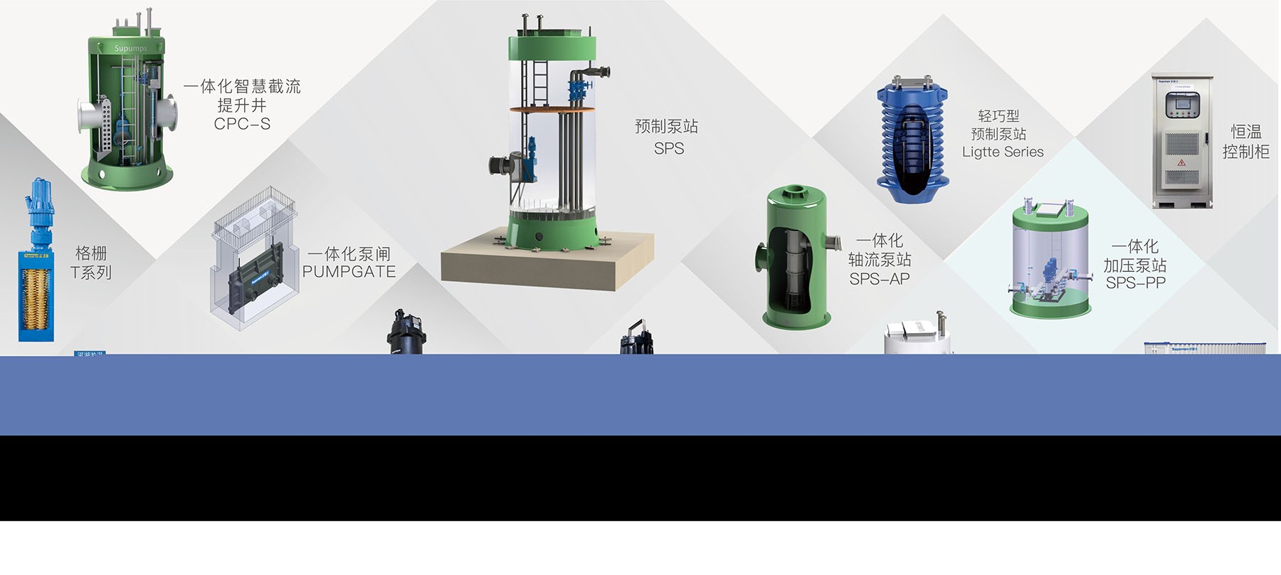 series轻巧型预制泵站、一体化加压泵站、一体化轴流泵站、一体化智慧截流提升井CPC-S、智慧型一体化泵闸PUMPGATE、超磁分离水体净化一体化设备BSP、德国NEWTEC淤泥/污泥大流量高干度快速脱水无害化处理方案等行业领先产品和工程服务。