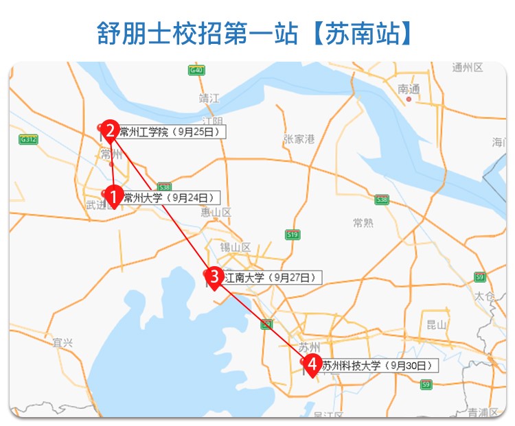 9月,舒朋士校招宣讲会以苏南为起点,开启了四所高校的招聘宣讲会,分别在24日、25日、27日及30日走进了常州大学(研究生专场)、常州工学院、江南大学以及苏州科技大学。