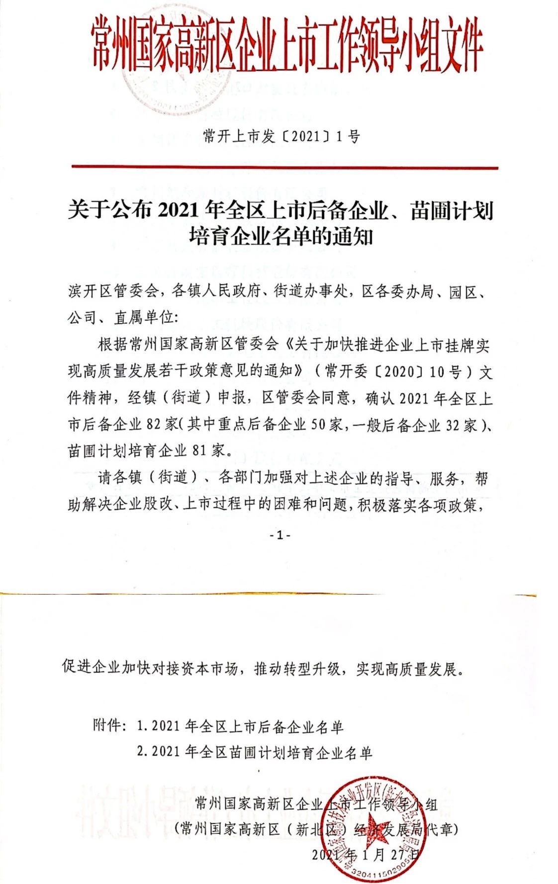 会议确认了2021年全区上市后备企业82家、苗圃计划培育企业81家。舒朋士环境科技(常州)股份有限公司上榜2021年度常州国家高新区苗圃计划培育企业名单。
