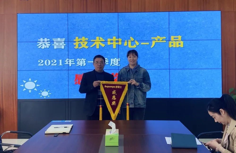下午由各职能部门对一季度工作完成情况进行汇报。最后由产品组对2021年新品政策进行宣导与讨论。会后对一季度表现优异的部门进行颁奖表彰。
