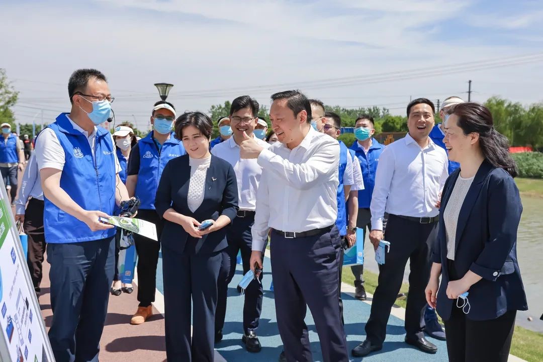 仪式结束后,区领导及河长队伍沿永安河畔参观近年来我区青年企业家在水环境治理领域研发的产品和取得的成效,展望科技治水赋能河湖长制的美好蓝图,老干部局向现场参观人员展示了近年来老干部积极投身志愿服务的工作成果。