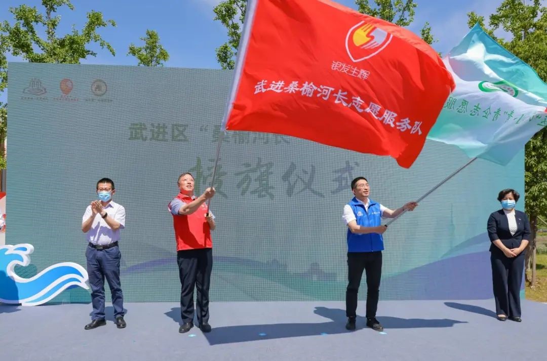 启动仪式上,区河长办主任、水利局局长刘建荣致欢迎词,“桑榆河长”、“青企河长”代表分别作表态发言,裴红鑫和朱岩为两支队伍授旗,标志着武进区“桑榆”、“青企”两支民间河长队伍正式成立。